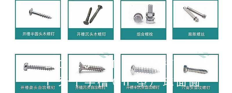 (鐵板牙自攻螺絲) B-2: Plastic Tapping Screw. (塑膠用,自攻螺絲) C: Wooden Screw : 木工螺絲 D: Drywall Screw :水泥墻螺絲 E: Self Drilling Screws鉆尾螺絲(不銹鋼鉆尾螺絲,復合材料鉆尾螺絲) F:膨脹螺絲,四片膨脹螺絲又 1、Flat:平頭 (鎖入后,頂部與工作件齊平)2、Oval:色拉頭、O頭、半沉頭 3、Round:圓頭 4、Pan:圓扁頭 5、Truss:大圓扁頭 6、Hex:六角頭 A-5:Finish Code/外觀處理。公制自攻螺絲 :于品名后方直接標示 Tapp