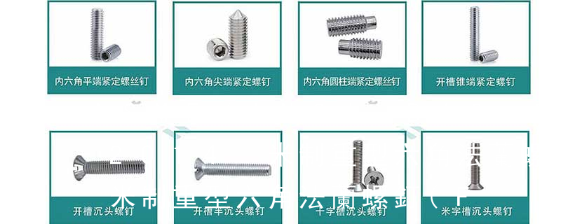 ④頭型 :用字母來表示頭型的種類,可參看前文常用螺釘頭型分類。 ⑤牙型/尾型 : 用字母來表示牙型/尾型的種類,可參看前文“常用螺釘牙型/尾型分類”。 ⑥槽型 :參看前文“我司常用螺釘槽型分類”,十字槽或無槽(如沖六角頭